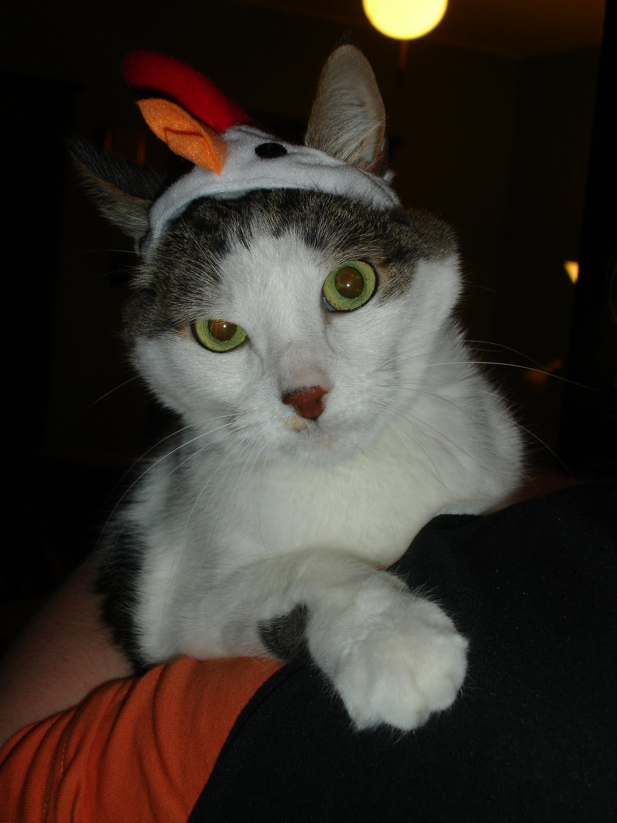 | Noah in his Halloween costume, its a rooster hat. Can you tell how happy he is? |